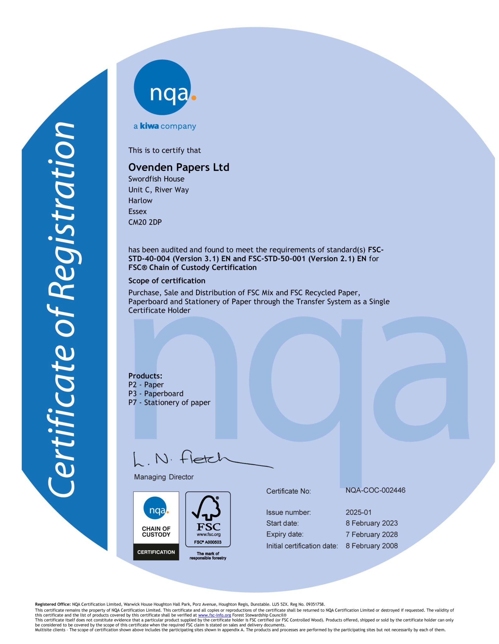 Details about our FSC® and PEFC system procedures can be provided on request.