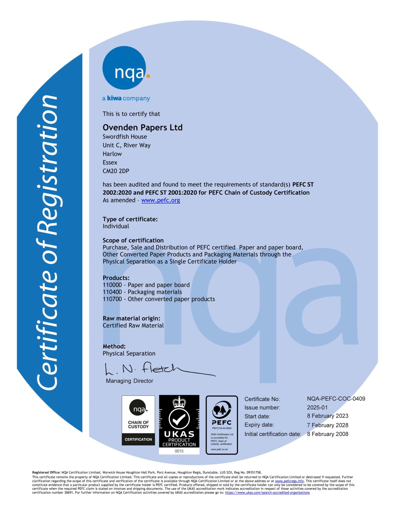 | PEFC NQA-PEFC-COC-0409 | 07.02.28 |